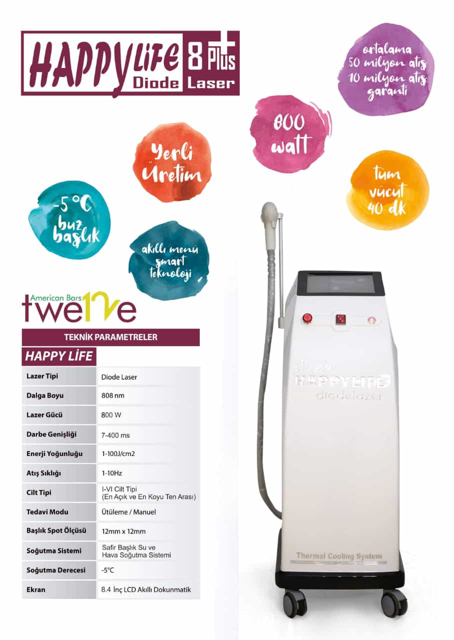 Happy Life Diod Lazer Cihazı ile 5 farklı cilt tipinde uygulama yapılabilir. Cihazın vücut üzerinde 3mm-5mmarasında pigmente ısıyla inerek kıl köklerinde deformasyon uygulaması sonucunda kısa zamanda kalıcı çözüm odaklı sonuca dönüşebilir. Cihazda uzun süren çalışma özelliğine sahip olan Happy Life Diod Lazer Cihazı 1-10Hz arasındaki hızı ile kısa zamanda seansı bitirerek işleme ve sonuca değer katar. Sonuç odaklı olan Happy Life Diod Lazer Müşteri Memnuniyetini en üst seviyede tutarak değerli müşterilerimizin memnuniyetine sunulmuştur.